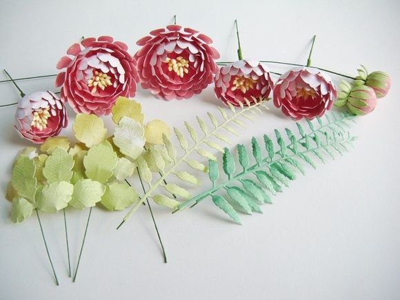 Découper les différents feuillages et fleurs, qui seront modelés à la main